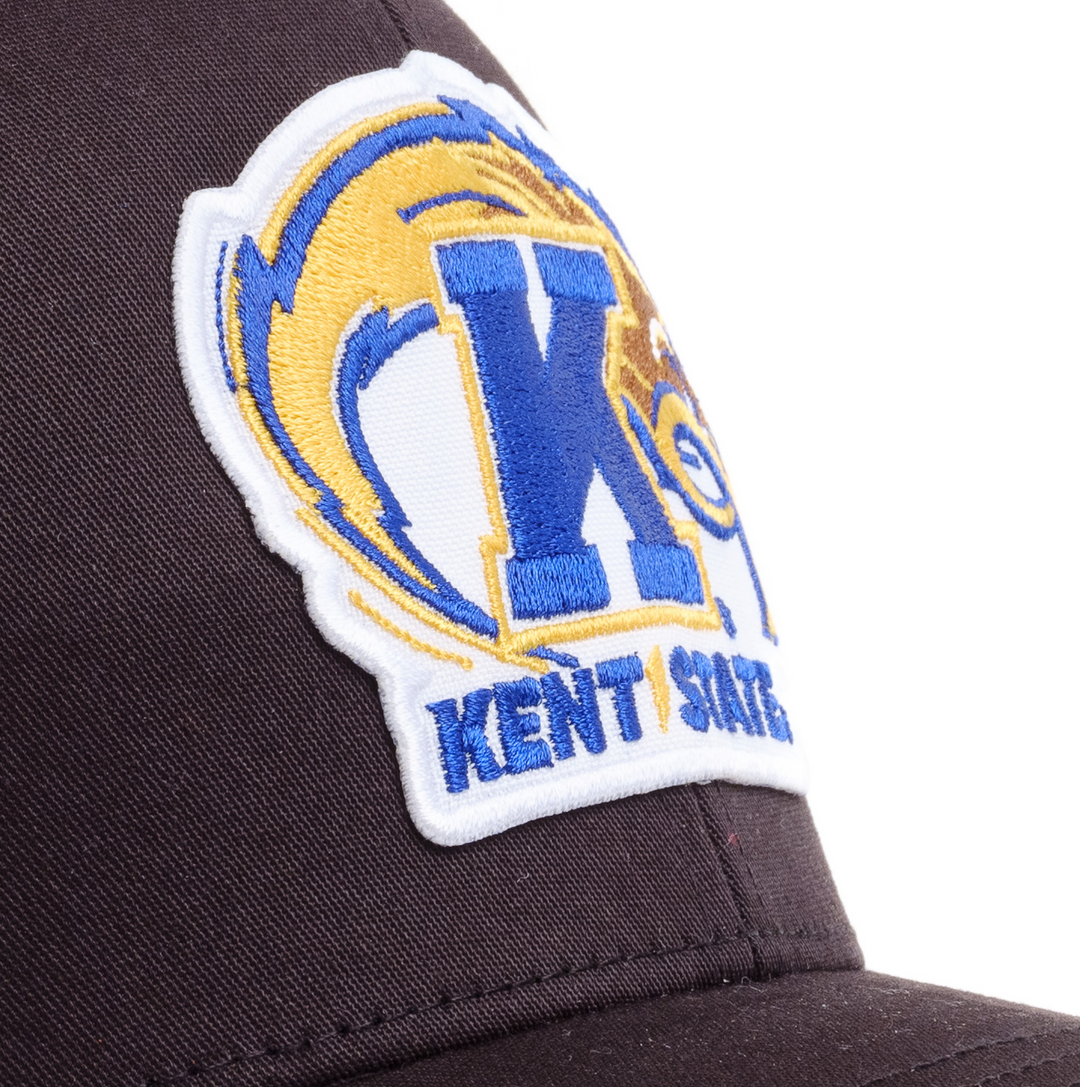 The perfect Kent State hat for any Golden Flashes fan! This comes in a Blue and White trucker style hat with a mesh backing. It has the primary Golden Flashes logo on the front in a very detailed embroidered patch. It's adjustable with a plastic snapback enclosure on the back. Overall, it's a great addition to any Kent State Fan's wardrobe!