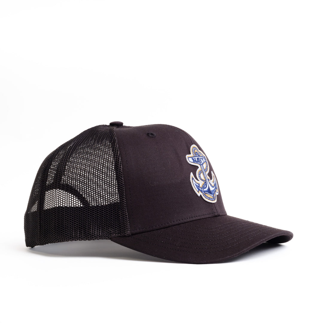 This US Navy hat is a great way to show off your love for the US Naval Academy. It showcases the iconic anchor logo with the text "NAVY" across the top. It's an all black trucker hat with a mesh backing for breathability. In addition, the snapback closure in back is designed to fit most head sizes. Let's get into the specifics!