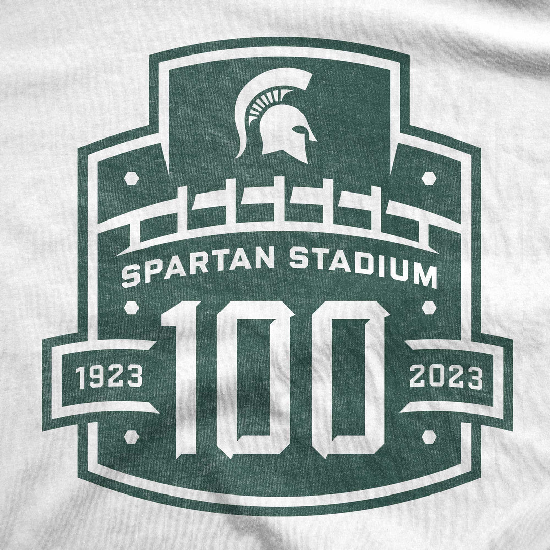 Crafted from 100% combed ringspun cotton, this tee is all about comfort. The classic white color sets the stage for the vibrant MSU green print of the official 100-year Spartan Stadium anniversary logo. But here's the kicker: it's a limited-edition run. Don't miss out on history – grab yours now and celebrate a century of Spartan pride!