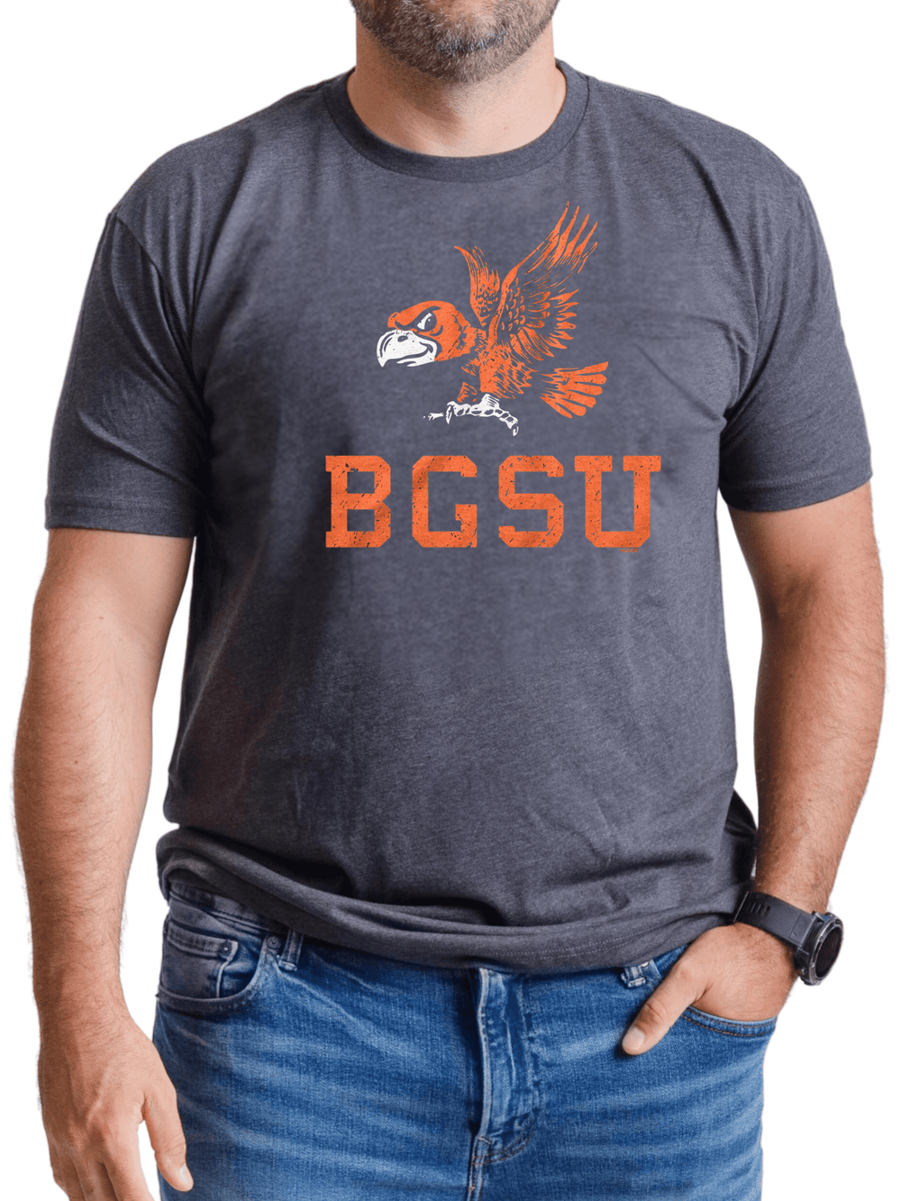 Relive your Bowling Green glory days with this vintage BGSU Falcon logo t-shirt! Our incredibly soft cotton polyester blend will fit and feel better than any 100% cotton shirt, making it your first choice from homecoming to graduation. All printing is done by hand with nothing but the finest inks and screens in the USA and are true to unisex sizing. Ay Ziggy Zoomba!